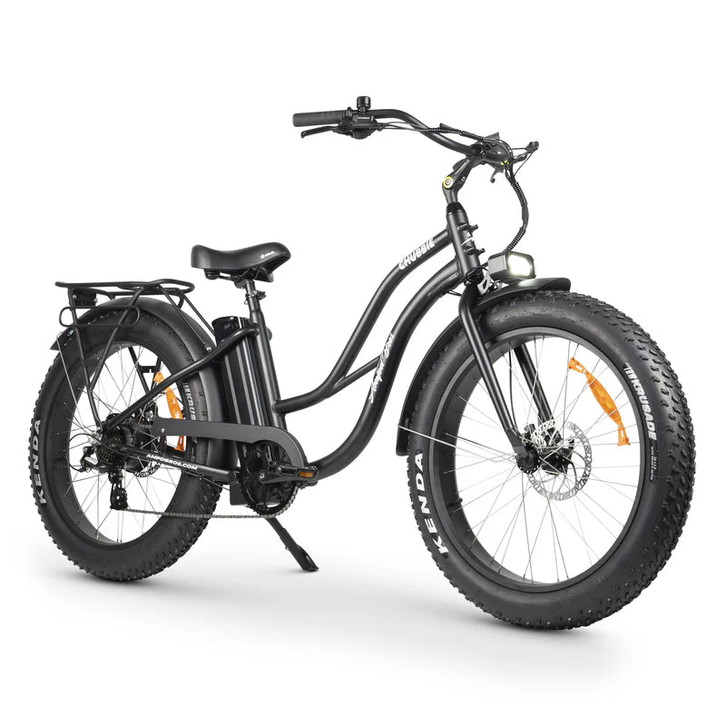 In Box Bike, 48V Battery, 2A AUS Charger, Front Headlight, Basic Tool Kit, Manual, Pedals, Fenders, Rear Cargo Rack, Seat & Kick Stand
