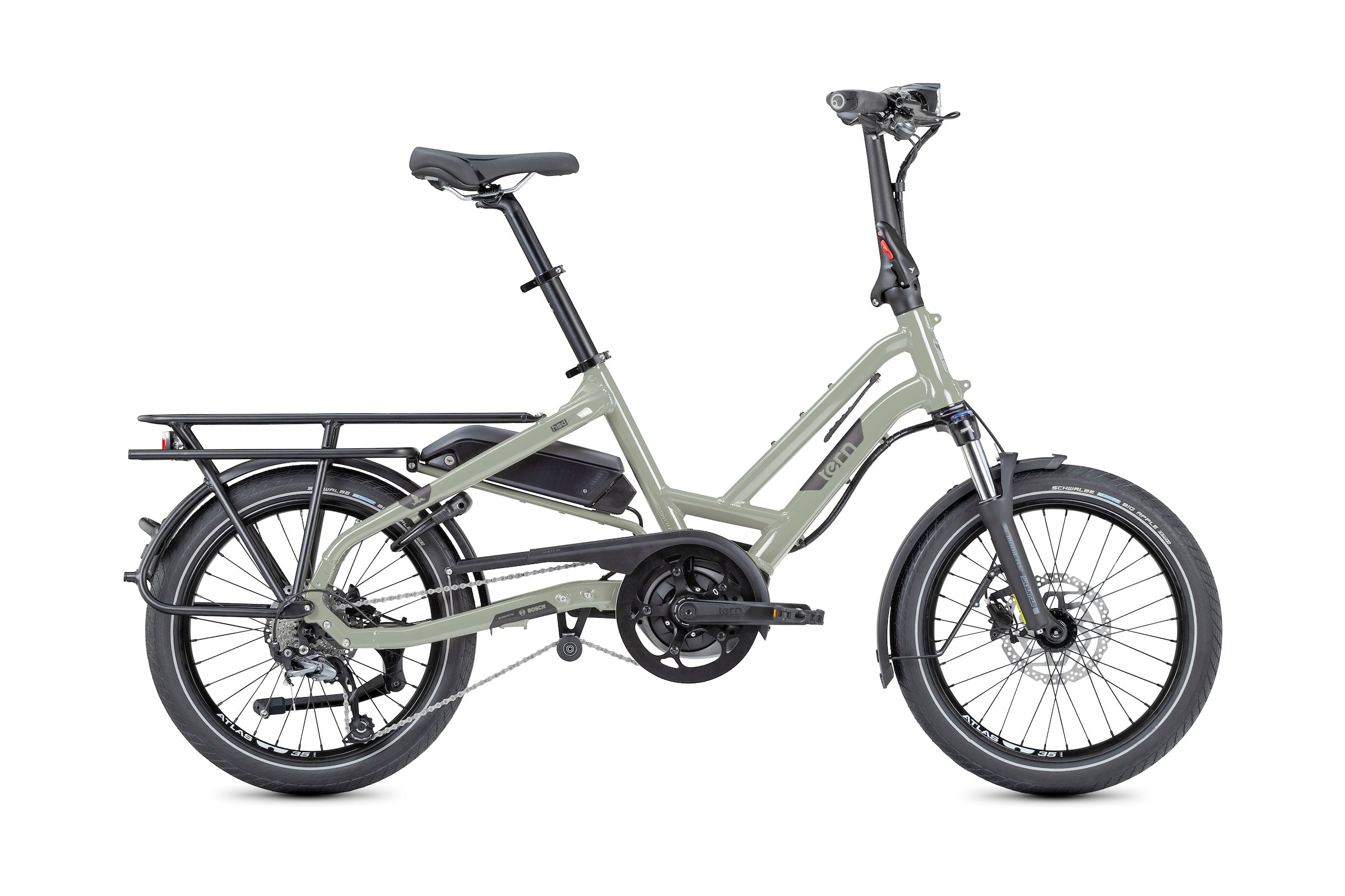 Despite its diminutive stature, the HSD is a mid-sized cargo bike with some serious hauling capacity. With a maximum gross vehicle weight of 170 kg (374 lb) and an XL-sized Atlas H Rack™, it’ll carry a week’s worth of groceries or camping equipment for the weekend. It even has a dedicated trailer mount, so adding extra cargo is a cinch.